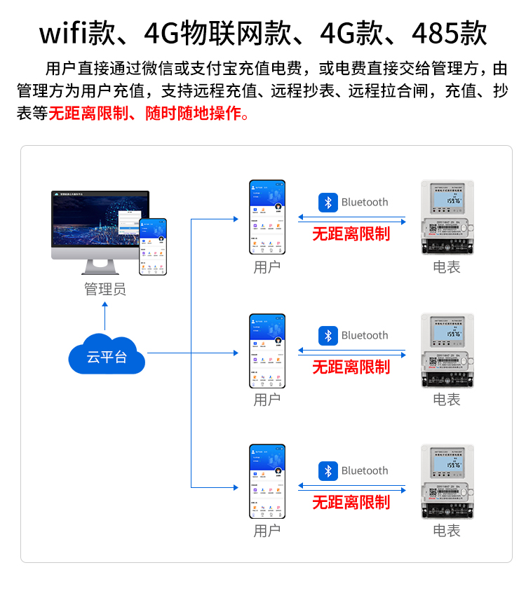 b. 當用戶欠費或達到用電上限時,管理方可以遠程控制電表的閥門,切斷電源,以避免欠費繼續用電或者用電過載。