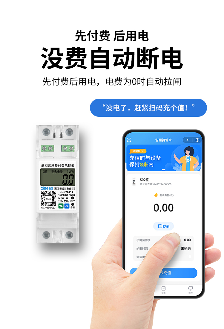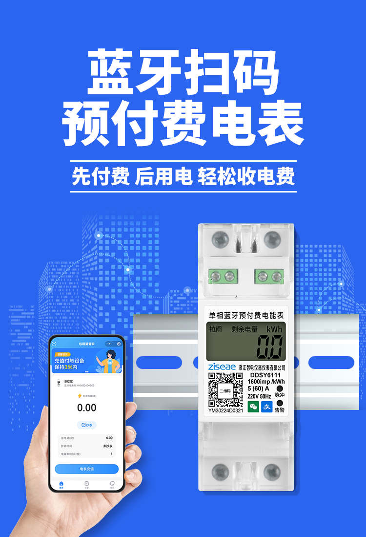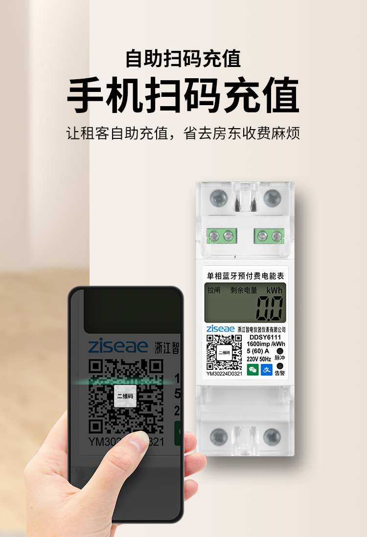 訂購產品: 單相導軌藍牙掃碼充值電表