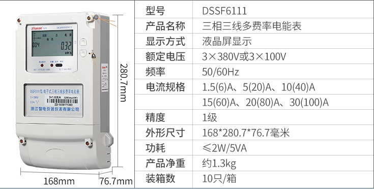 型號:DSSF6111三相三線多費率電表(2007規約)