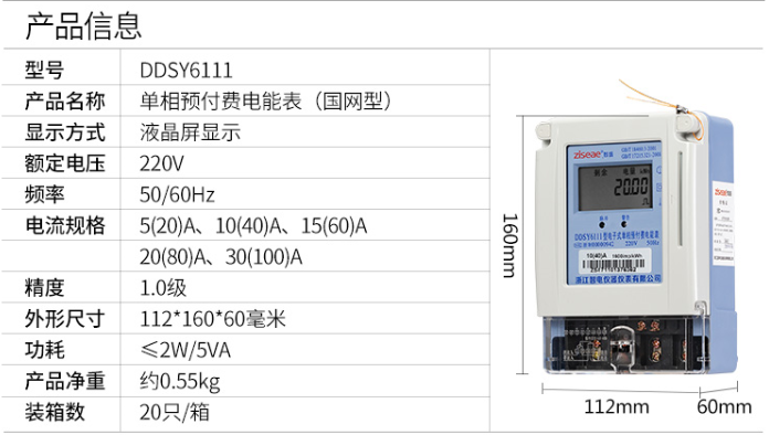 DDSY6111單相預付費電表(經典款 國網 液晶IC卡插卡式電能表)